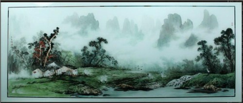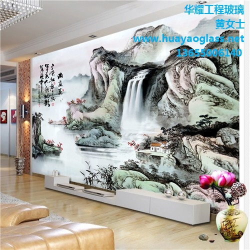 夹胶山水画玻璃 艺术玻璃屏风 山水画玻璃 华耀供