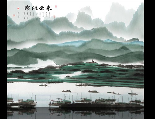 福州山水画磨砂玻璃 福山水画景观玻璃 夹丝山水画玻璃 华耀供